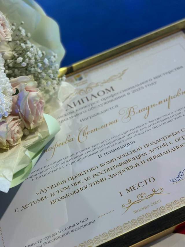 Хотим поделиться радостной новостью: наш специалист по социальной работе, Светлана Тимофеева, стала победителем Всероссийского конкурса профессионального мастерства. В рамках проведения Всероссийской недели охраны труда состоялась торжественная церемония награждения победителей Всероссийского конкурса профессионального мастерства в сфере социального обслуживания. В конкурсе было представлено 15 номинаций, и в нём приняли участие 4 тысячи специалистов отрасли. В финал вышли 800 участников, из которых жюри выбрали 52 победителя. 🥇От всей души поздравляем Светлану, занявшую 1-е место в номинации «Лучшая практика комплексной поддержки семей с детьми, в том числе воспитывающих детей с ограниченными возможностями здоровья и инвалидностью», с практикой по организации работы учебно-тренировочной квартиры для подростков с инвалидностью «Уверенный старт». Эта высокая награда ярко свидетельствует о высоком уровне профессионализма, огромной самоотдаче и глубоком внимании к нуждам тех, кому необходима поддержка. Мы убеждены, что наши сотрудники будут продолжать удивлять нас своими успехами и вносить значительный вклад в развитие социальной сферы.🎉🎊🎉